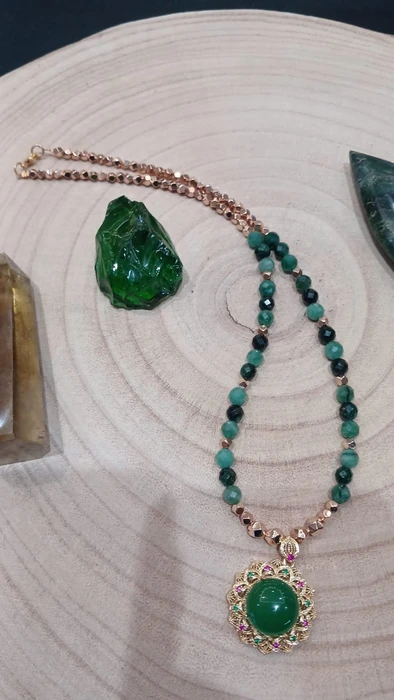 תליון מאבן אגת ירוקה וחרוזי אמרלד